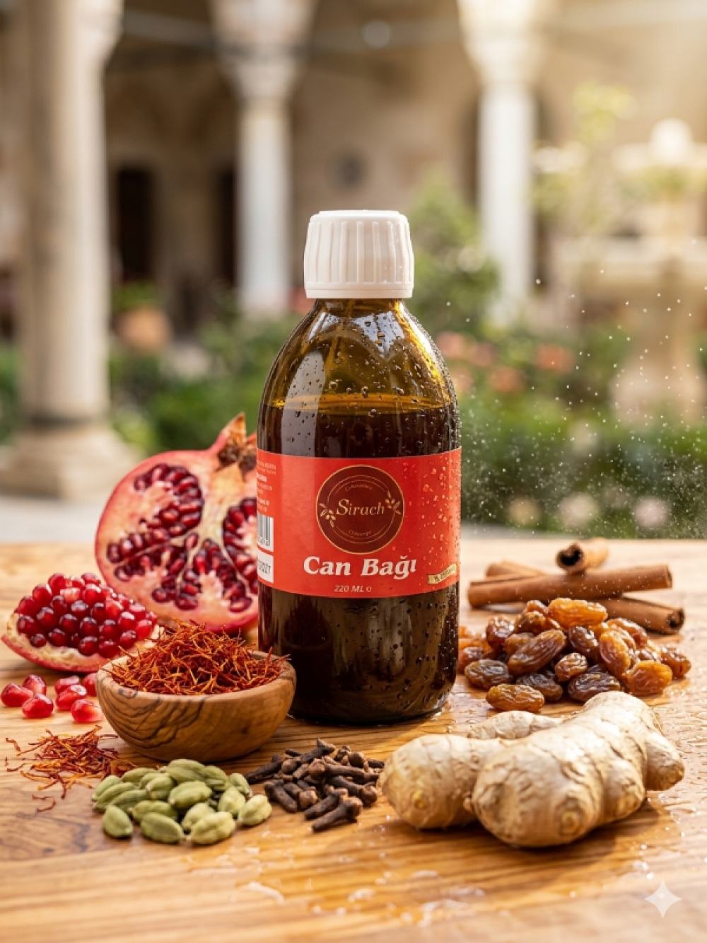 Can Bağı, doğanın en değerli bileşenlerini (nar suyu, safran, kakule ve seçkin baharatlar) bir araya getiren %100 doğal bir sıvı takviyedir. Vücudun doğal kuvvetini yükseltmek, besin eksikliklerini tamamlamak ve sindirim sistemini desteklemek amacıyla geleneksel formüllerle hazırlanmıştır.