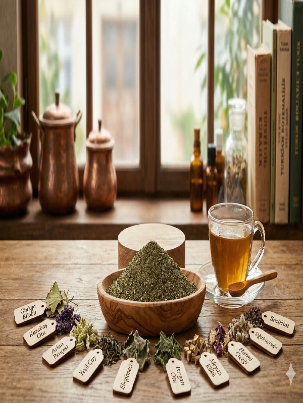Kan ve Damar Sağlığı: Ginkgo Biloba ve Isırgan Otu ile kan dolaşımını oksijenlendirmeye, Karabaş Otu ve Yeşil Çay ile sinir sistemini yatıştırmaya yardımcıdır.